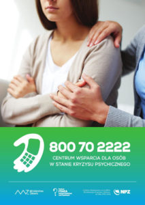 - Telefoniczne Centrum Wsparcia 800 70 2222 (Bezpłatną linię, która działa 24 godziny na dobę przez 7 dni w tygodniu)